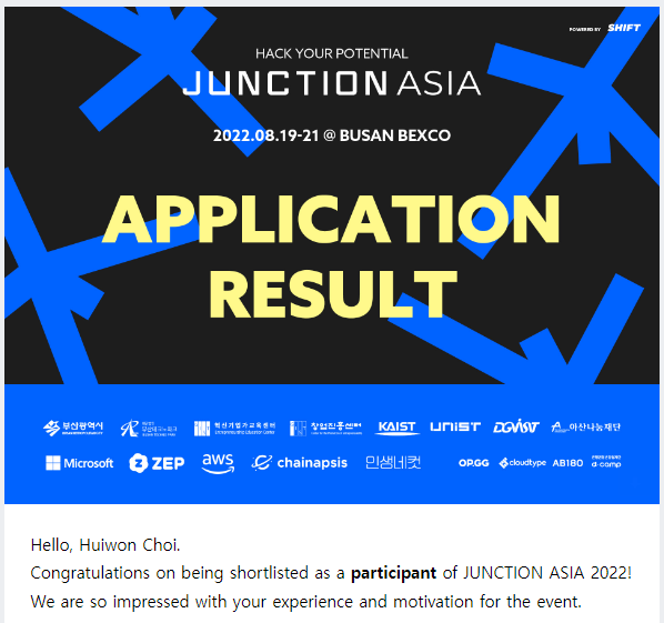 UCPC도 그렇고 모든 일들이 어쩌다가 일어나는 거 같은데, 제 인생의 모든 일들이 그렇게 일어나는 거 같습니다. 정션도 크게 다르지 않았습니다. UCPC도 끝나고 방학을 맞아 한없이 뒹굴뒹굴거리던 저는 JUNCTION ASIA 2022가 열린다는 글을 보게 됩니다. 어떤 글이었는지는 잘 기억이 나지 않지만, 2박 3일 동안 밥도 주고 숙소도 주는 최고의 기회라는 코멘트가 같이 적혀있었습니다. 밥과 호텔에 낚인 저는 생에 첫 해커톤을 나가기로 결정합니다.