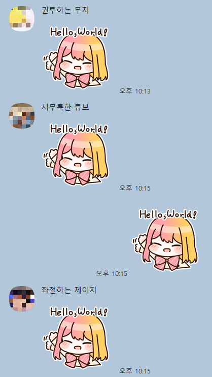 한별이 귀엽지 않나요? 팀원 전부가 한별이 이모티콘을 가지고 있다니 행복한 일이에요.