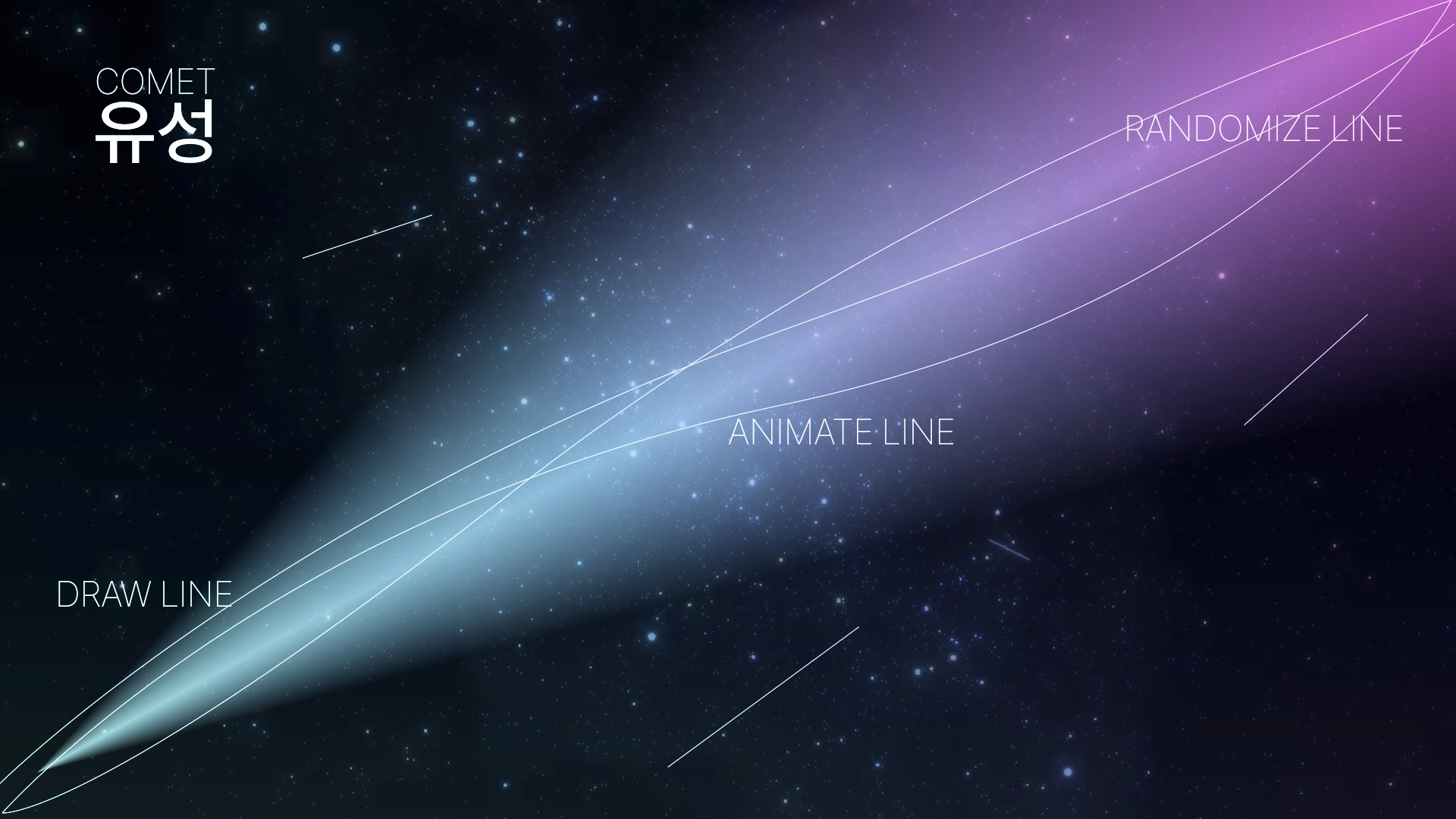 아직은 뭔가 어색합니다. 우주 공간 위에 하얀 선 15개가 가만히 멈춰있습니다. 유성은 이렇지 않습니다. 유성은 (당연하게도) 움직입니다. 정확히는 시작점부터 시작해서 서서히 선이 그려지며, 시작점부터 시작하여 다시 서서히 선이 사라집니다. 이러한 애니메이션은 어떻게 구현할 수 있을까요?