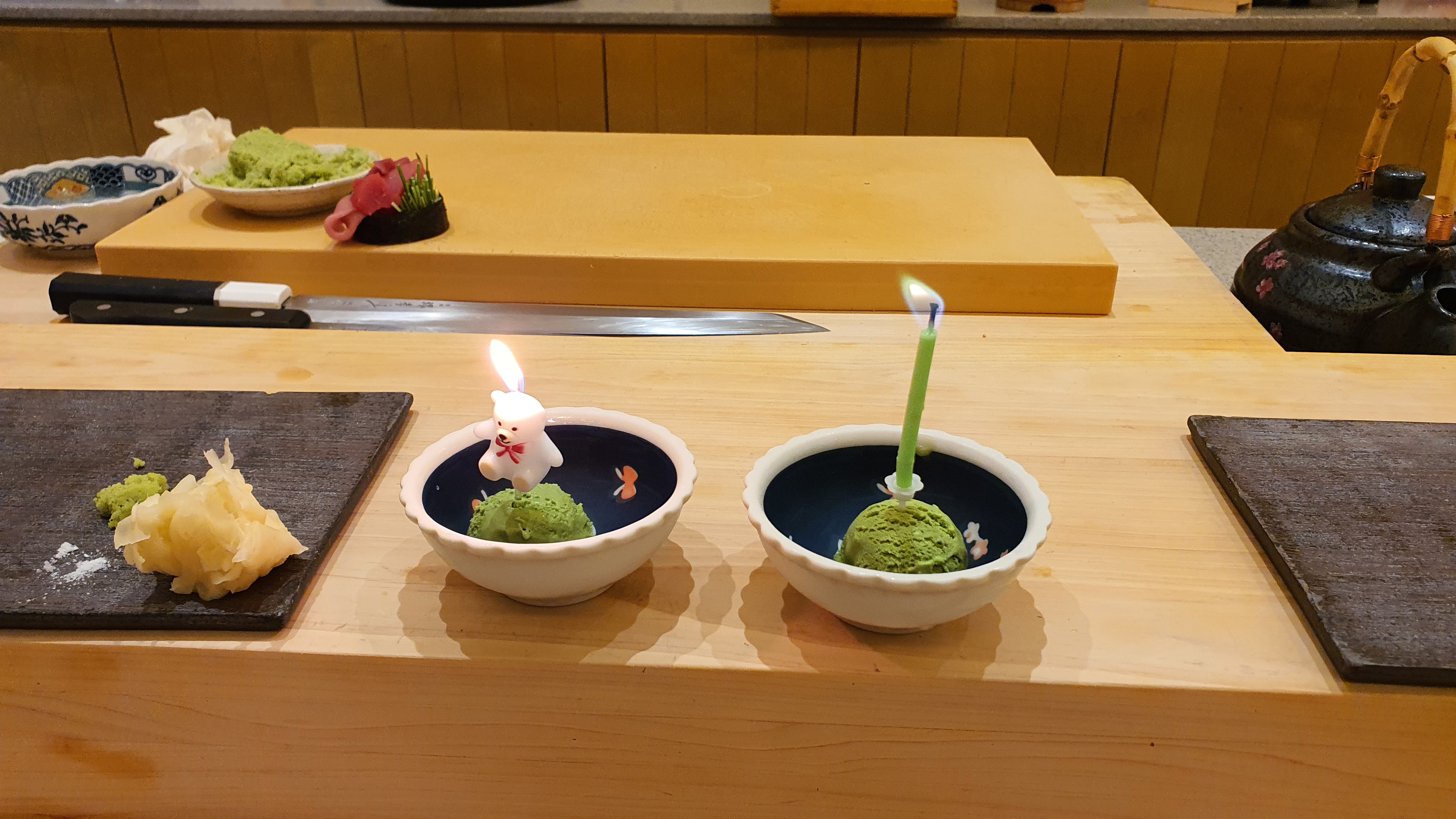 생일이라고 말하니까 아이스크림에 초를 꽂아주시더라구요. 옆에서 얘기하는 걸 얼핏 들었는데 만드는 것보다 하겐다즈가 더 맛있어서 하겐다즈를 쓰신다고 합니다. 하겐다즈 맛있어요.