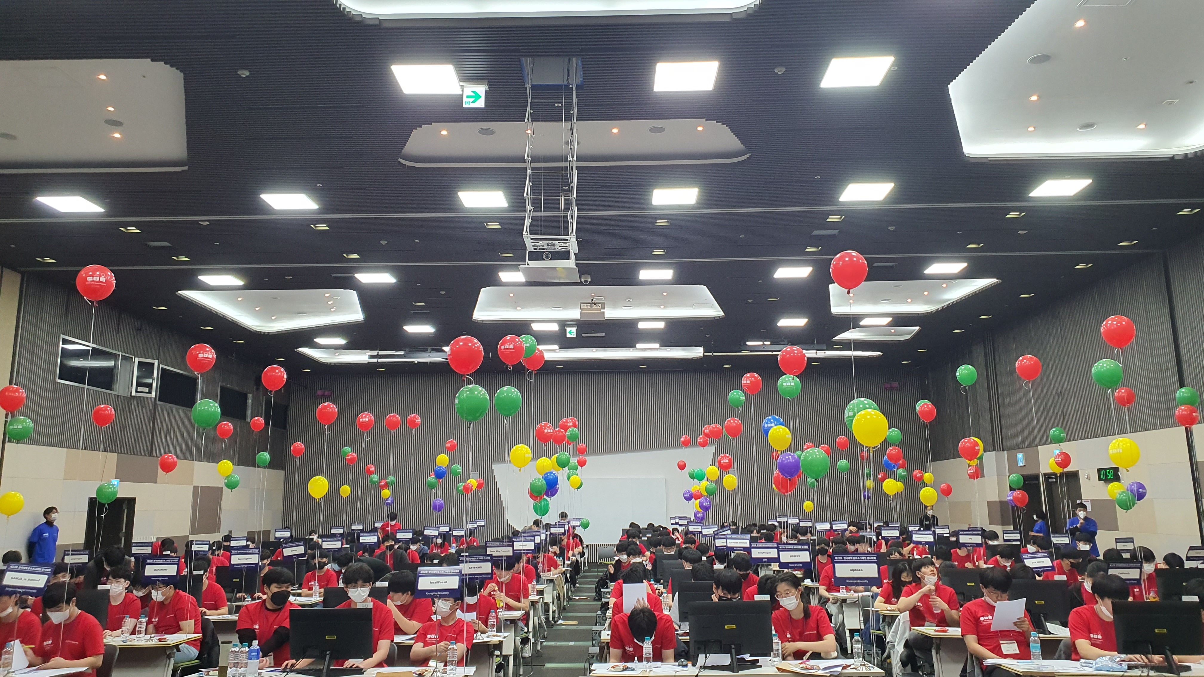 대회가 진행될 수록 알록달록한 색의 풍선이 달리는게 꽤 예뻤습니다. 사실 이 때의 기억은 너무 바빠서 잘 없습니다. 열심히 풍선을 날랐다는 기억만 있습니다. 대회가 후반에 접어들고 프리즈가 되면 한 숨 돌릴 수 있게 되는데, 이 때는 스태프 들도 스코어보드를 볼 수 없습니다. 저희도 엄청 두근두근했어요.