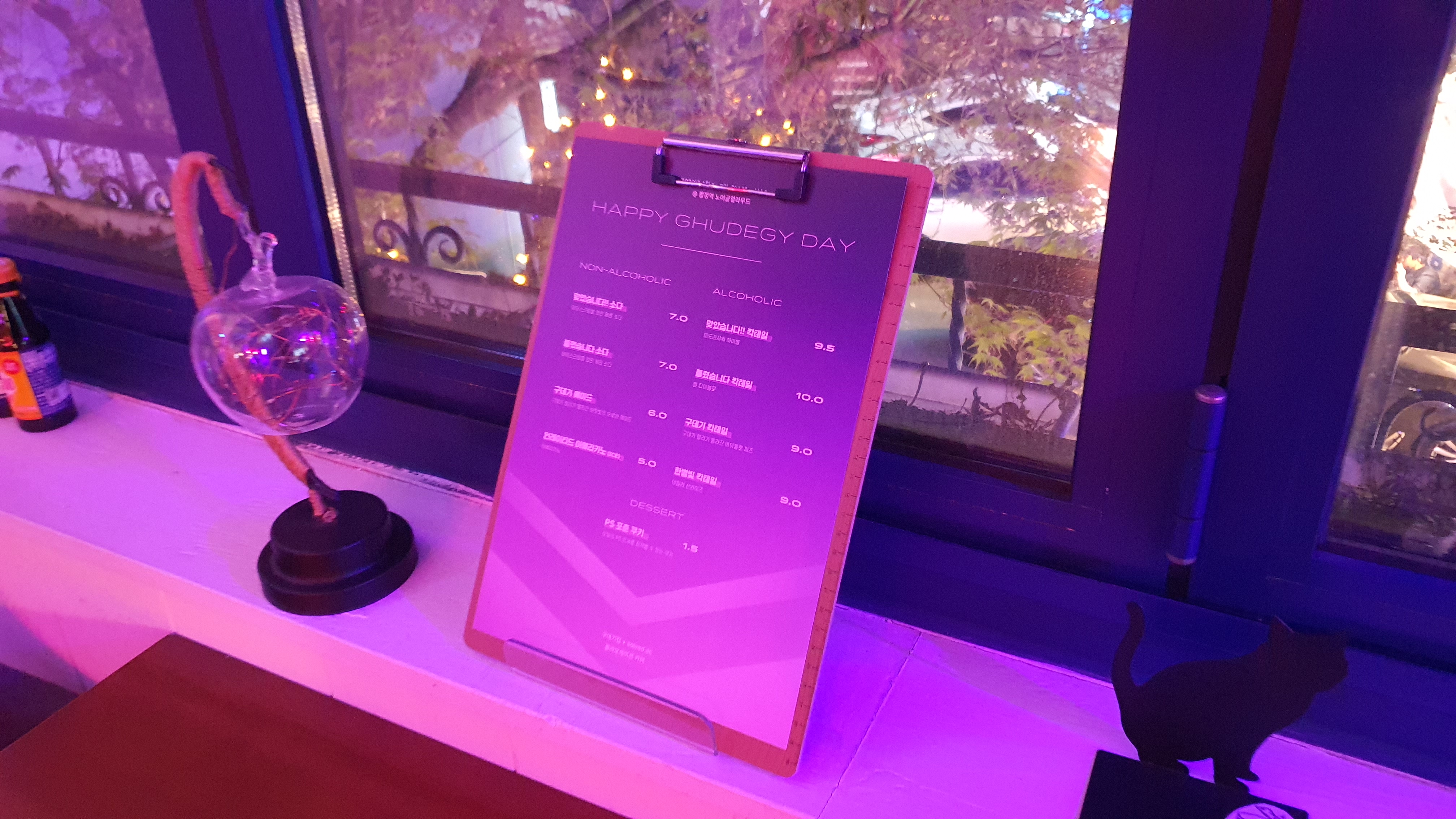 인테리어는 역대 구데기컵 포스터를 위주로 꾸미기로 했습니다. 한별이 일러스트도 넣을까 잠깐 고민했는데, A4 사이즈로 편집하기도 귀찮을 것 같고 그런 비율이 잘 없기도 하고... 그래서 있는 한별이 엽서와 사진들만 넣고 추가로 인쇄는 하지 않기로 했습니다. 카페에 빔프로젝트도 있다고 해서 무슨 영상을 틀지 고민했습니다. 원래는 제가 남는 시간에 작혼을 하고 그걸 스트리밍 하고 싶었는데 작혼이 청불 게임이 되기도 했고... 빔프에 연결된 노트북이 주방 쪽에 있다고 해서 그냥 유튜브 재생목록을 만들어서 틀어놓기로 했습니다. 해당 재생목록은 여기서 확인하실 수 있는데, 만우절이니만큼 들었을 때 헛웃음이 나올 만한 영상과 노래들을 골라봤습니다. 오타쿠 노래와 밈 노래들 그리고 코딩 드립들이 섞여있는데 계속 강조하지만 저는 오시는 분들이 오타쿠 문화에 익숙하실 거라고 생각했고.. 그래서 꽤 과감한 선곡들이 몇 있었습니다. 결과적으로는 부담스러워 하시던 분들도 조금 있던 것 같아 살짝 후회하고 있습니다.