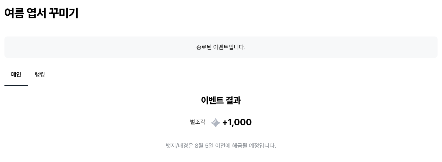 여름 엽서 꾸미기 이벤트가 종료되었습니다. 다들 재밌게 즐기셨나요?